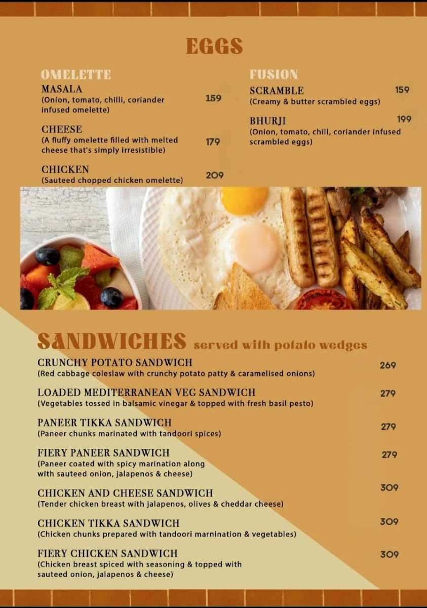 The menu accommodates quick orders or relaxed dining occasions, with items suitable for breakfast, refreshment during the day, or light to moderate meals. Visitors can expect a balanced mix of vegetarian and non-vegetarian offerings, along with both hot and cold beverages.